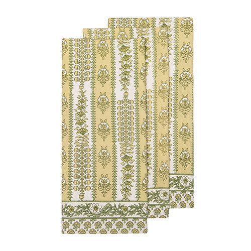 Verdant and wild, our Pistache Avignon tea towel is inspired by the lush, loosely-tended gardens of Southern France. The bright watercolors in these tea towels are ideal year round for family dining, a picnic or the breakfast nook. These fine French table linens are hand-printed and can perk up a kitchen towel rack, line a bread or picnic basket, or nestle a pitcher of your favorite beverage.