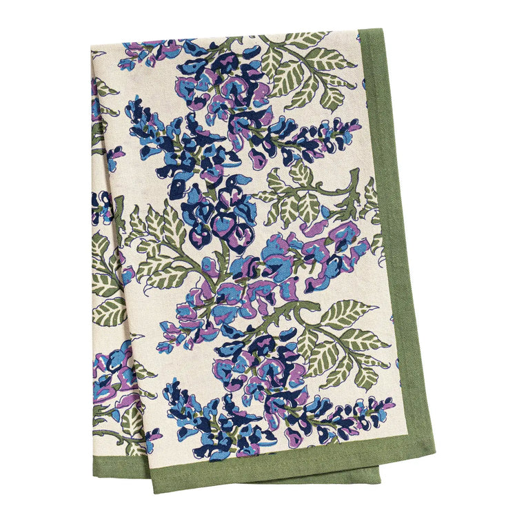 The Wisteria collection features olive green vines with delicate pendant-like blooms. The ivory background with it’s cascading blue and purple-tinged flowers create a beautiful landscape for your delicacies. Dine-in style amidst memories of gorgeously perfumed flower clusters. This elegant piece is a tasteful essential in every linen collection.