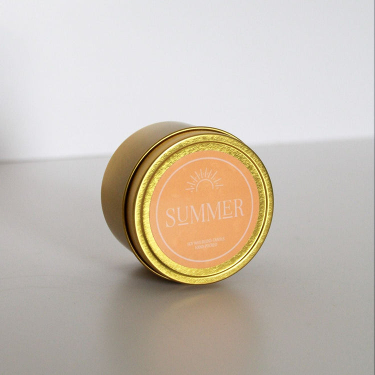 Sophie's Summer Tin Candle brings a vacation to your home. Enjoy the delicious aroma of freshly-picked pineapple and cilantro, perfect for this season! Light this candle and transport yourself to a sunny paradise!