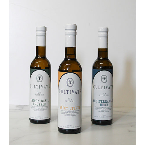 This Greek Extra Virgin Olive Oil is infused with spicy notes of habanero and garlic, balanced with fresh Meyer lemon and blood oranges.