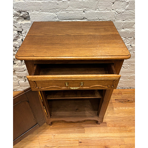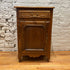 This small French cupboard is a beautifully crafted storage piece with timeless European charm. Made from solid wood, it features a paneled door, a single upper drawer with decorative brass hardware, and a softly shaped apron at the base. The warm wood tone and subtle patina highlight its age and craftsmanship.
