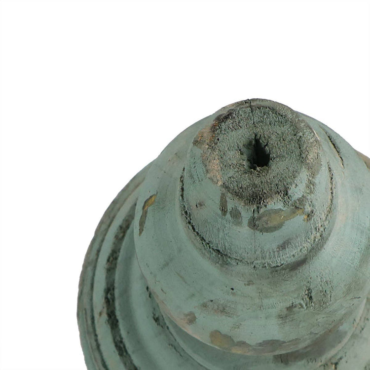 Our lathe-turned Finials are hand-crafted of sprung pine wood for a distinct, vintage look. A weathered green patina adds to the ageless charm of these architectural accents. They pair well together, and not one will be alike in style or condition.