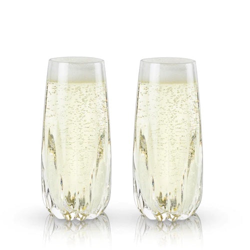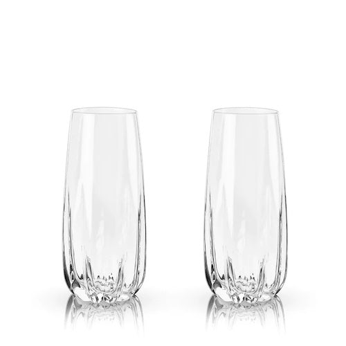 A series of ascending symmetrical grooves imitate the natural curvature of a San Pedro cactus and lend a stunning silhouette to this champagne flute duo. Fashioned from lead-free crystal, each piece accommodates 8 oz. making them exquisite containers for your favorite bottle of sparkling wine.