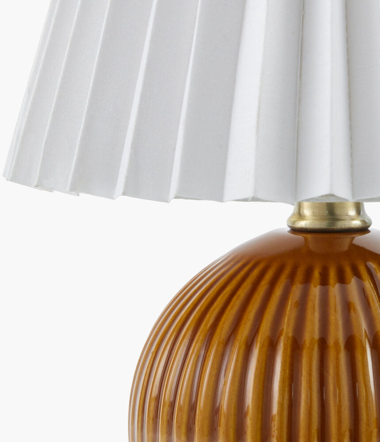 Add a touch of elegance to any room with our Ferez Dark Brown Ceramic Lamp. Featuring a beautiful glazed dark brown ceramic base and a crisp white linen shade, this accent table lamp will bring warmth and style to your home. Transform your space and create a cozy atmosphere with this stunning addition.