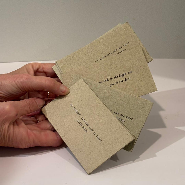 Discover the perfect way to inspire or encourage others with our Quote Cards. Printed on rustic brown paper, these cards come in a variety of uplifting and meaningful quotes tailored to suit any occasion or mood. Their unique texture adds a warm, vintage charm, making each message feel personal and thoughtful. Ideal for gifting, decorating, or simply sharing a positive sentiment, these quote cards elevate every note with timeless style and heartfelt words. Choose your favorite and make your message unforgettable.