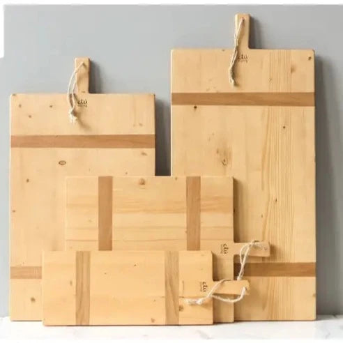 Bring a touch of Italian design and character into the home with an iconic Pine Charcuterie Board. This reclaimed wood board is distinguished by two strips of contrasting timber on one side, while the other side of the board shows the authentic beauty of the reclaimed wood. Inspired by classically rooted designs, intentional knife marks are created by a master craftsman to replicate the look of authentic originals. Versatile in the kitchen, this board is ideal for serving antipasti, crudités or a classic charcuterie spread for your next gathering.